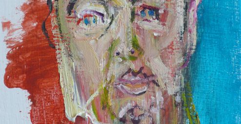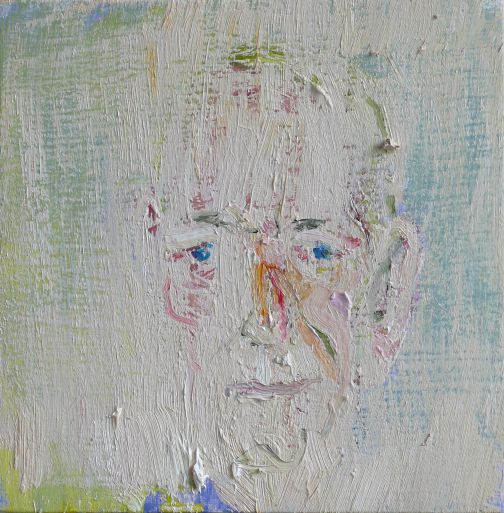 Portret Car 2 liet ik al in een eerdere fase zien, in het bericht van 9 juli, Grote woorden en meer verf. Toen vond ik het nog niet klaar. Ik wilde het gelaat meer kleur geven. Het hernemend, besloot ik iets anders. Juist het broze van de man trof me opnieuw. Dikkere verftoetsjes kunnen na goede droging dat fragiele krijgen. Als breekbaar schuim.
