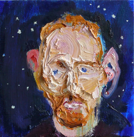 Er zijn enkele portretten die bij de naam van het sterrenbeeld een toevoeging in de titel krijgen. Zo schilderde ik op 2 juni vorig jaar dit portret van Ori met van Gogh in gedachten. Ik wees hem op het prachtige sterrenbeeld Orion, dat hij door het toeval gekozen had. Hij had het nog nooit gezien en zal het waarschijnlijk nooit zien; ‘binnen zitten’ betekent namelijk ook echt binnen zitten als het ’s avonds donker is. Daarom als geschenk aan deze man en als ode aan van Gogh, waren mijn laatste penseelstreken de witte dotjes verf in het blauw, de sterren van Orion.